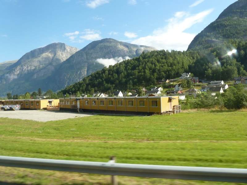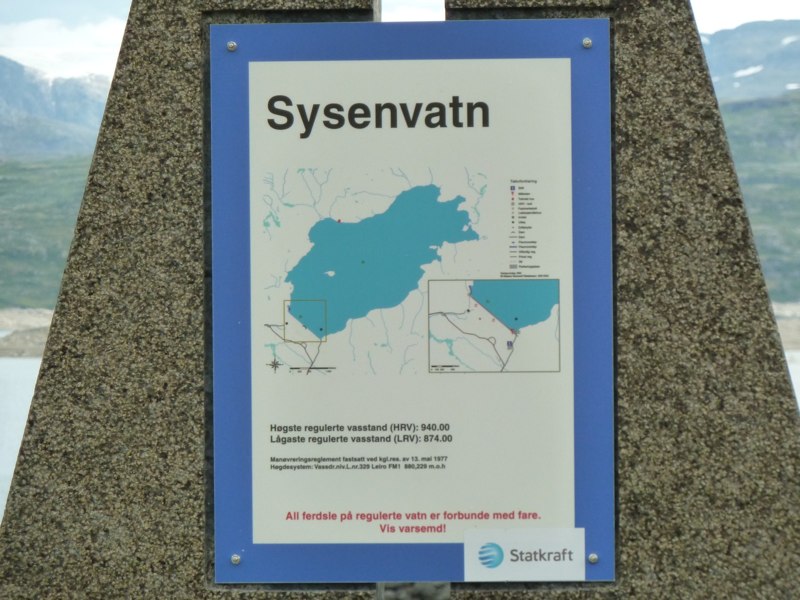 Our first stop was not the falls, but Sysendam, which directs water to the Sima Hydro Plant, dam where they use the water to create power. Across the reservoir was a range of mountains and a peek at one of the local glaciers.