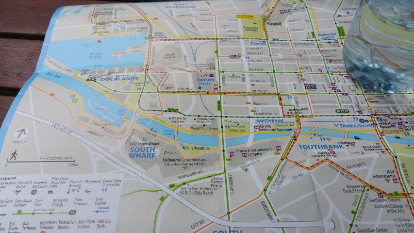After that great welcoming event, it was time to go explore Melbourne. We had done a little research on Cruise Critic and we learned we could purchase a train ticket that would take us to downtown. In the Downtown area the buses and trollys are free. We also found a ‘circle city’ tourbus that we thought was free, but turned out not to be free. We circled the city and made a note of areas we would want to visit when we return at the end of the cruise.