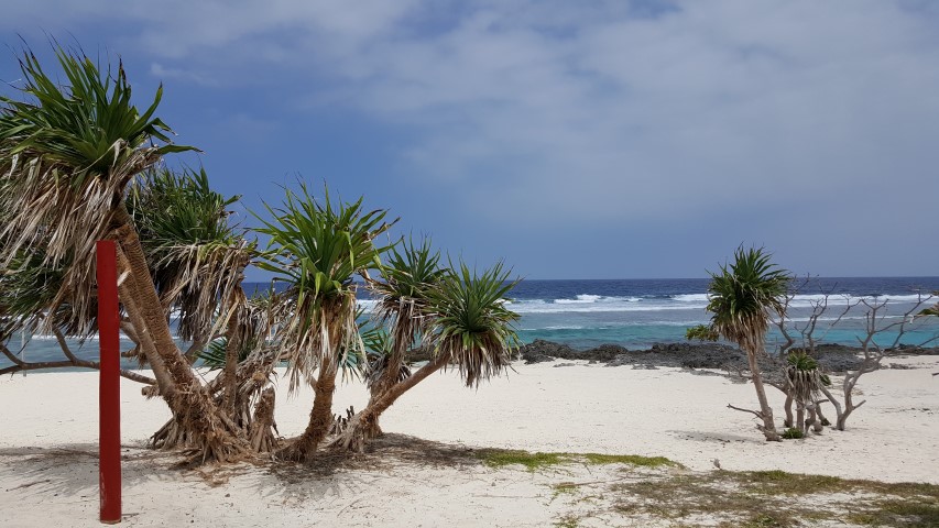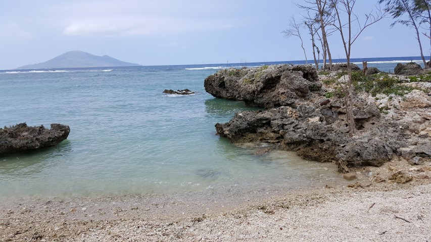 The last stop was to a beach area, where we had lunch. The beach was made entirely of coral pieces. The area around the beach was evidence of the typhoon that had destroyed thousands of trees on the island.