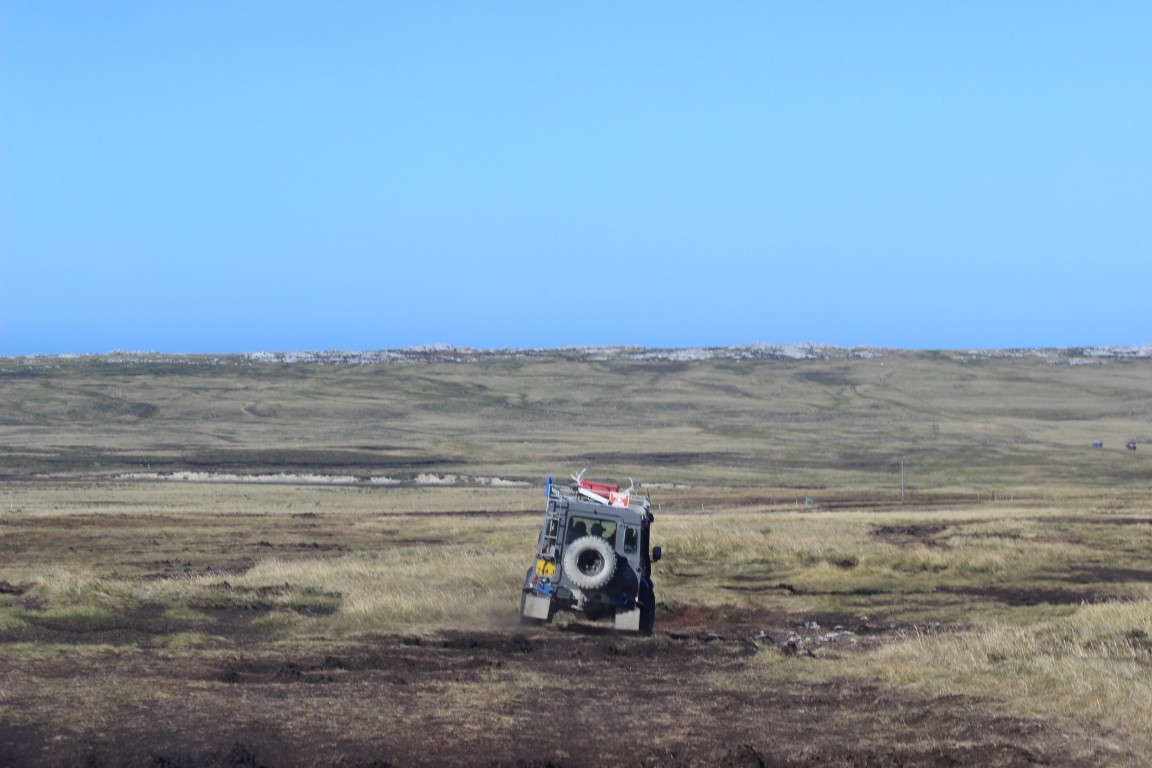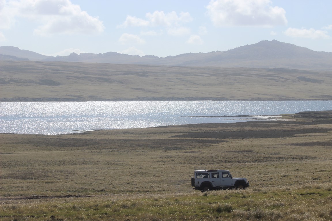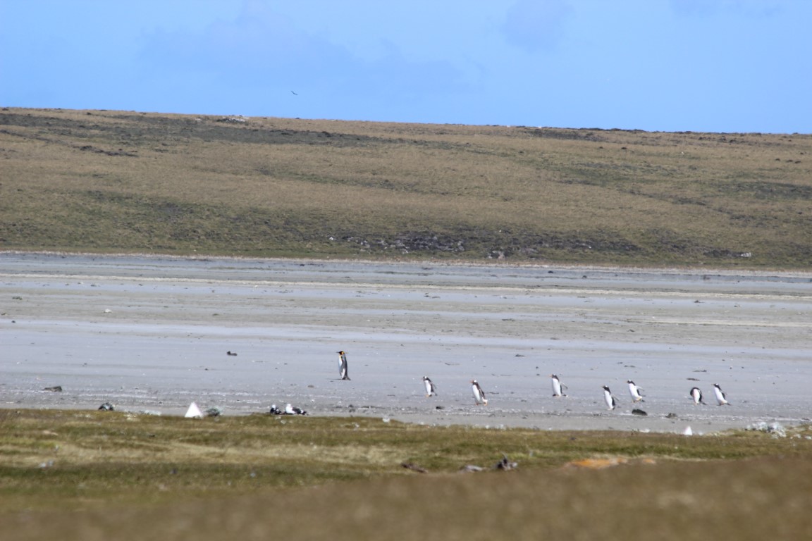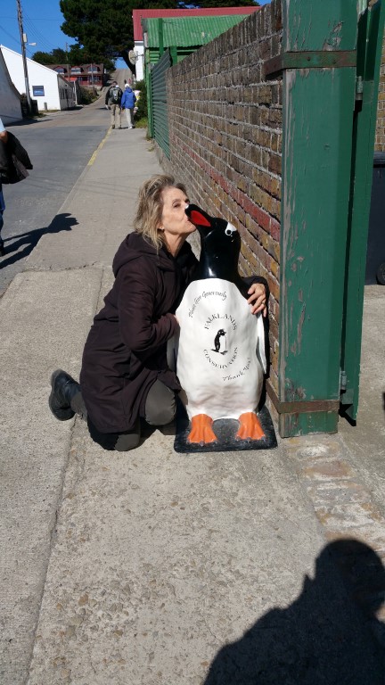 Adam and Susan took the bus to visit Bluff Cove lagoon -to see Gentoo and King penguins. This started with a bus ride from the city of Stanley (the only city on the island) to a pull-off near the entrance to the Bluff Cove property. Our tour guide gave us a lot of background information about life on Stanley and we found it very interesting. Once we arrived at the gate to the Bluff Cove property, we were met by a small number of land-rover 4×4 vehicles that took us across a large area to the cove. Our driver gave us more interesting insights on what it was like for the islanders during the conflict with Argentina in 1982. He said it was a terrifying experience, and we learned that Falkland Islanders still carry a lot of anger toward Argentina. Our driver explained how the bombing/shelling was physically exhausting to experience, and how he had hidden under the floor-boards in his home.