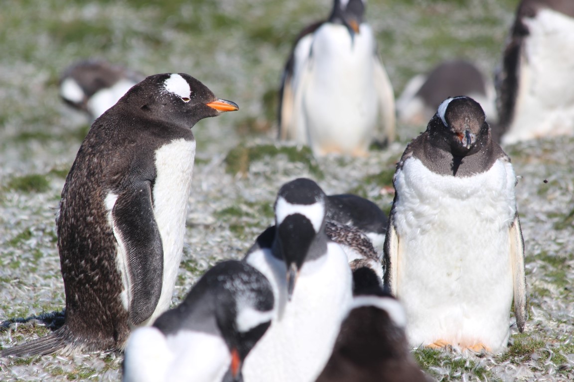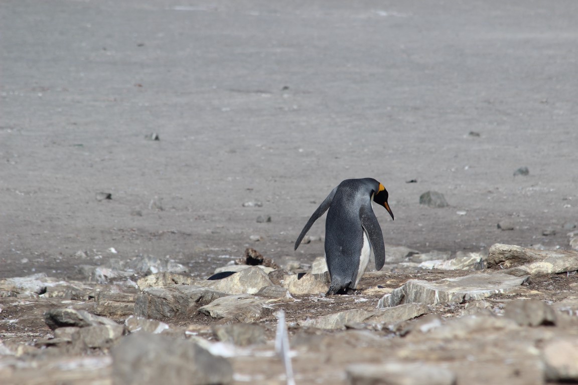 Once we arrived at the cove, there were local rangers present to tell us about the penguins. They explained that the Gentoo penguin chicks had recently headed out to sea, and what we were viewing was the exhausted parents, waiting for their molting to complete so they could also head out to sea. We were asked to stay behind some flags that were in the ground – to give the penguins space – so they could reserve their energy. We were also told about the small number of King penguins in the cove area, and learned that they had a few small chicks that had recently hatched. We were able to get some nice photos of them, and saw them feeding their chicks.