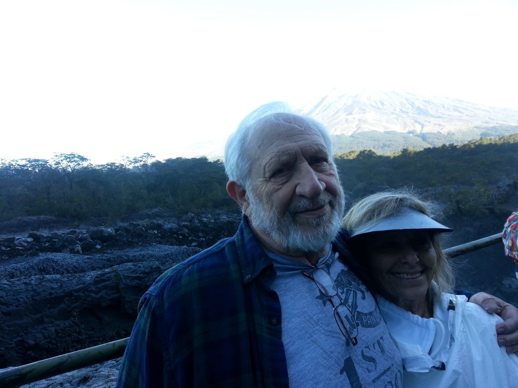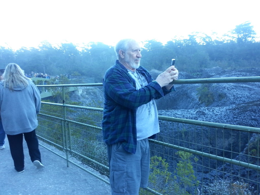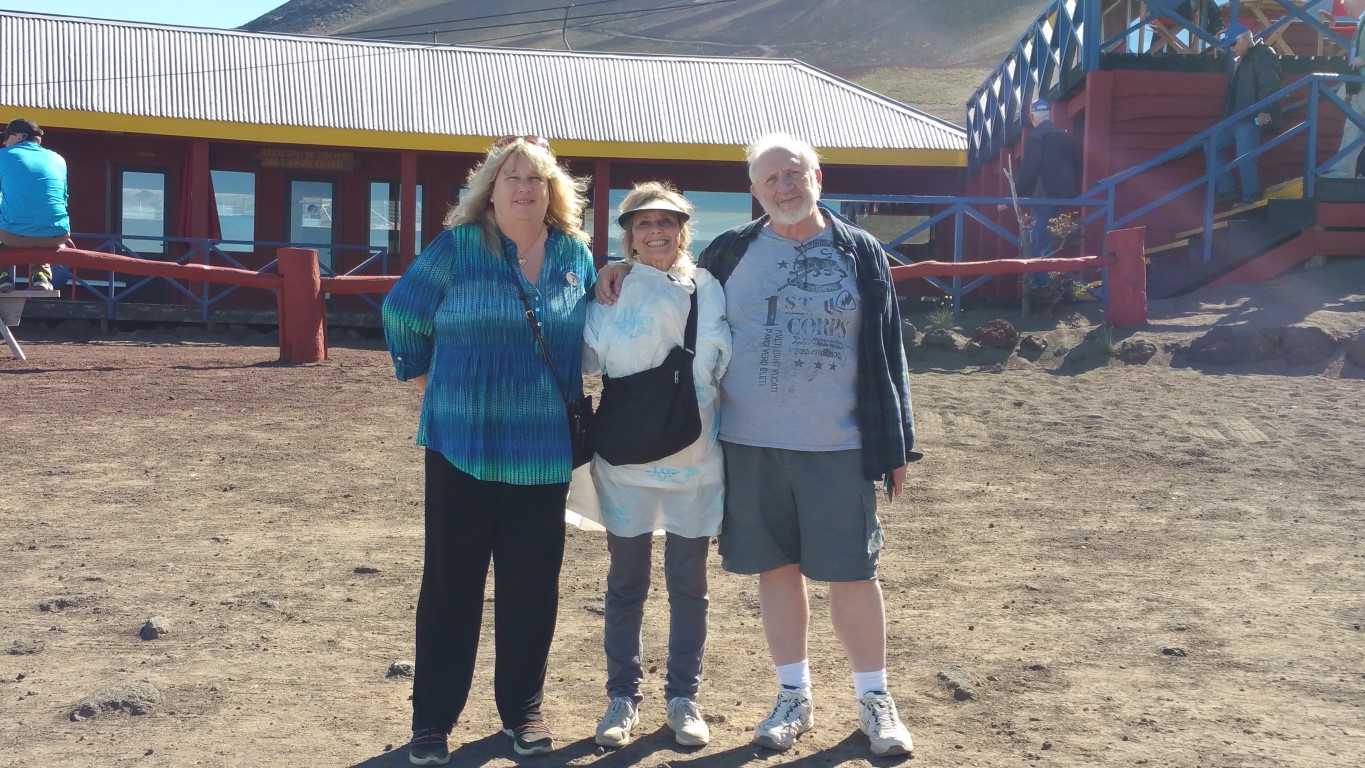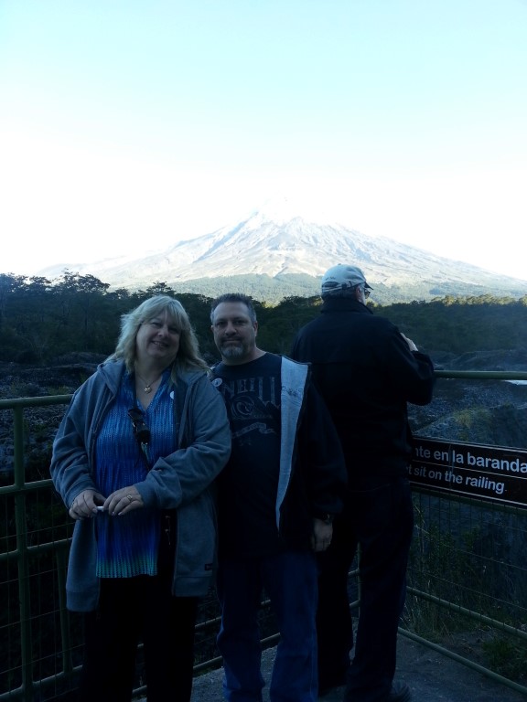 After leaving the falls, we headed up Orsorno Volcano. It was a long and windy climb up to the top with some amazing views. We were amused by some fellow passengers who were mesmerized by the fact that we were above clouds – and they took about 300 photos of the clouds below us. Once we arrived at the stop near the top of the Volcano, our guide told us there was a chairlift that we could take up higher, but that there was not enough time to take the lift up and down – so people would need to walk one way or the other, and that the path was slippery. Adam, Art and I decided not to go, but Cheryl took the lift up..and had plenty of time to take it back down as well… she was the only one treated to the extra view from above.