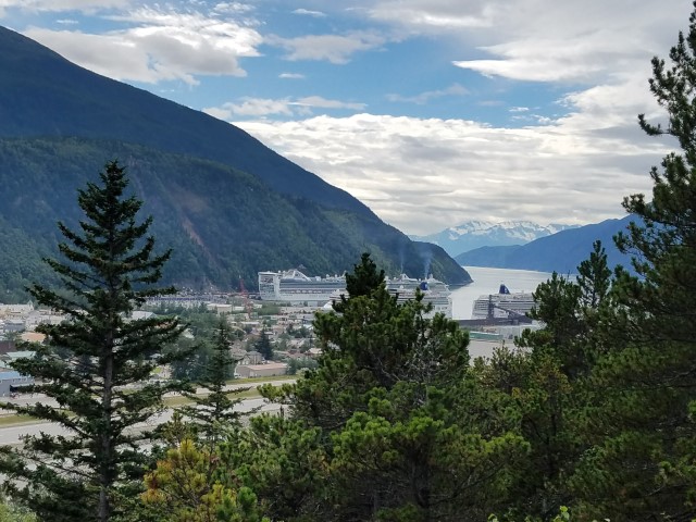 We enjoyed our salmon bake (again with the yummy sweet glaze!), and it was time to head back to town. Our guide stopped at this vista across from our ship.