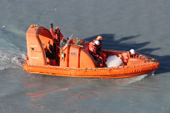 Our Captain did the same thing as yesterday – ‘parked’ the ship in front of the glacier and then after about 45 minutes, rotated the ship so the other side of the ship had the same view for about another 45 mins. He also had the crew go out with a rescue boat, and gathered some chucks from the glacier – then they brought the ice up on the pool-deck so folks could see them up close.