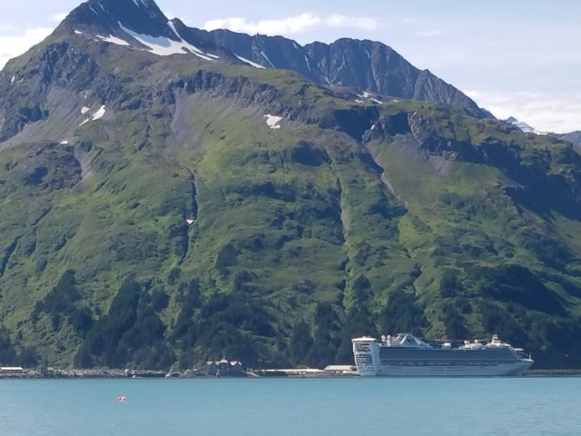 We got up and were already docked in Whittier (closest port to Anchorage). Next to our ship was the much smaller ship we would take an afternoon cruise on – and then be taken to our hotel in Anchorage.