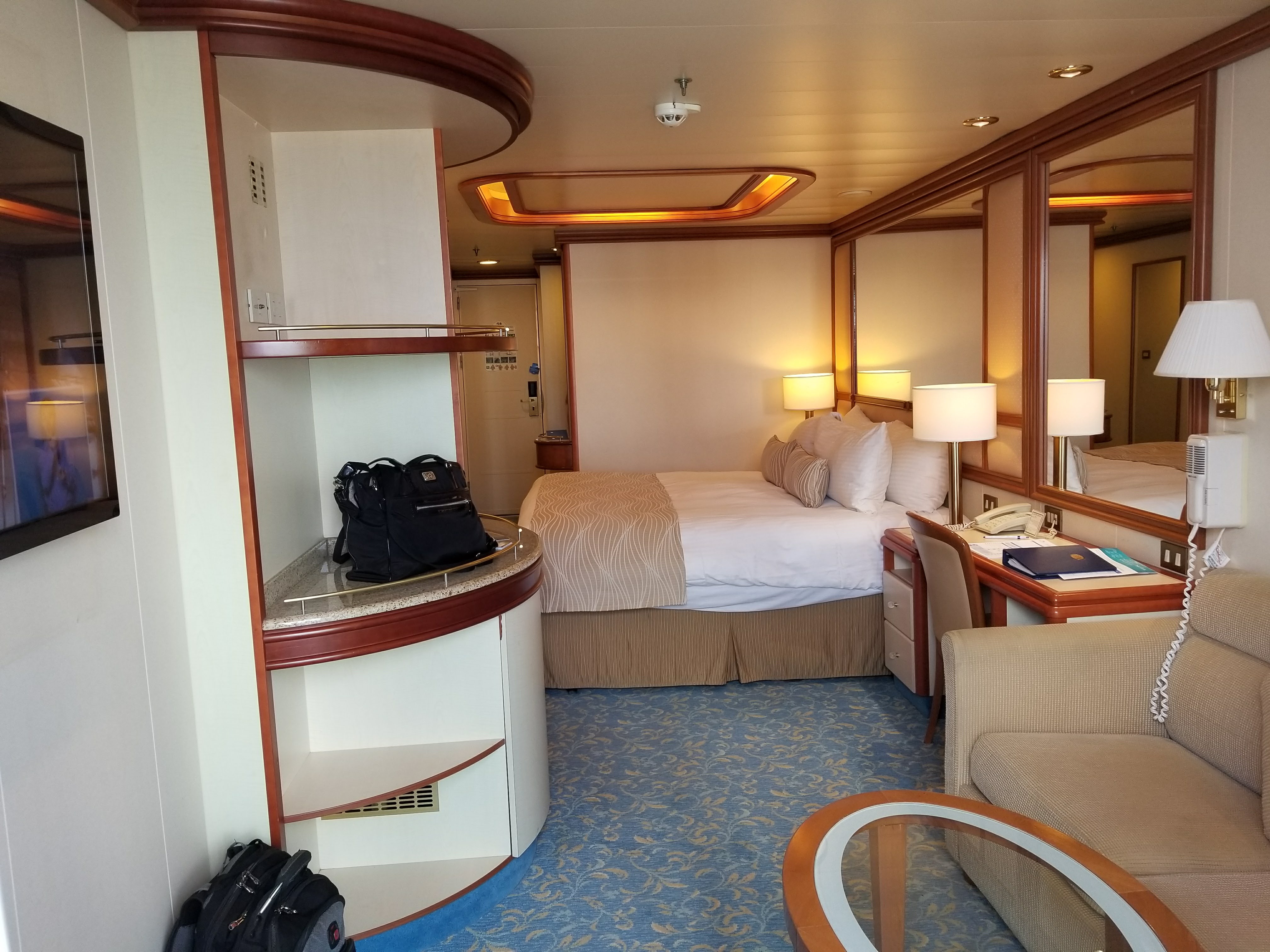 When we had checked into the hotel the evening before, we noticed several other Princess passengers had also checked in so we thought we might be able to get a transfer with them but we were advised we’d be better off securing our own passage which turned out to be true. We called an Uber and were taken directly to the terminal. Check-in was efficient and our room was ready. We are on Dolphin Deck 325 (Mini Suite) which is pretty much as we’ve been in before we when the ship was in dry dock the added some big screen flat screen tv’s and new mattresses which are petty comfortable. We met our room steward JUNE.