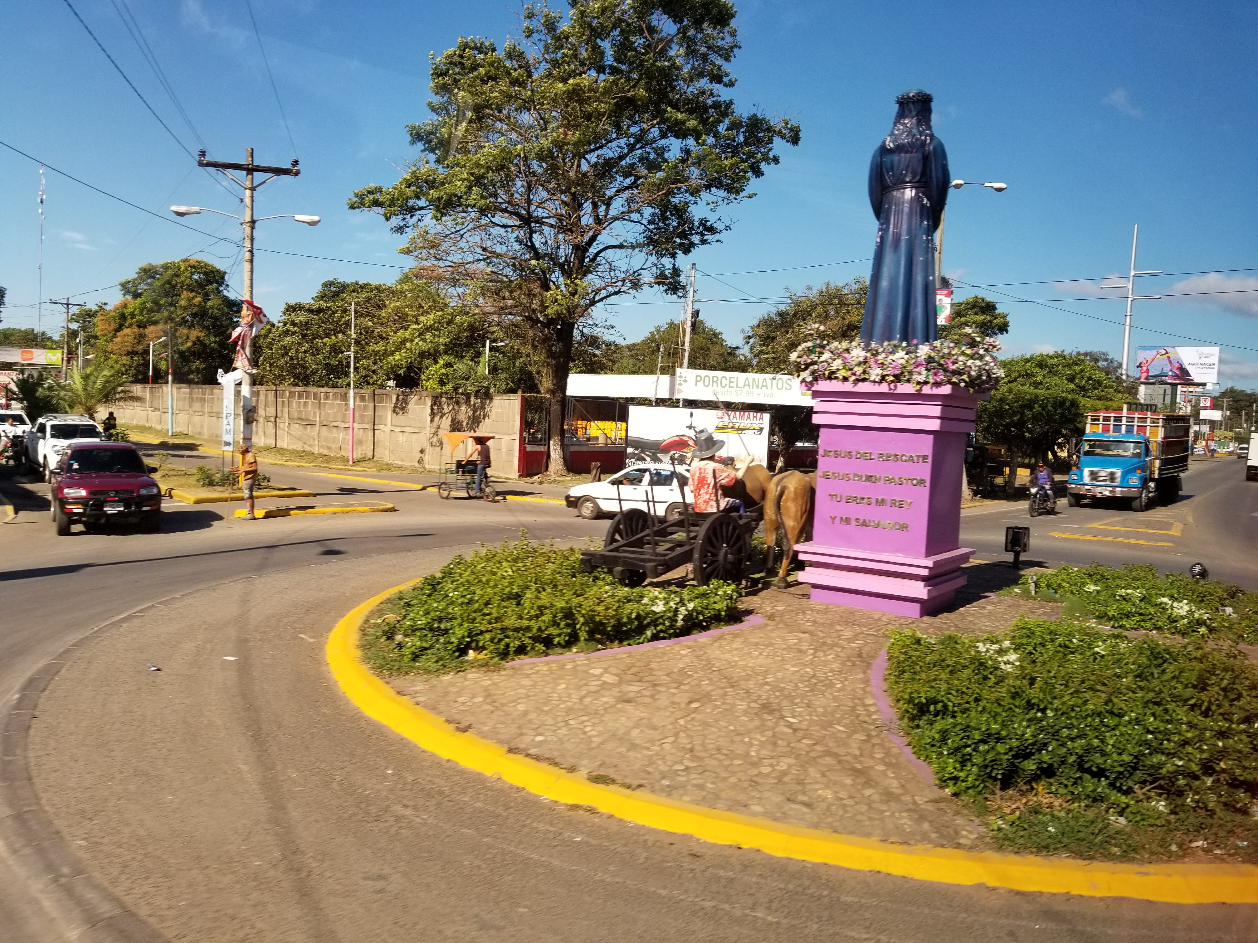 At the dock were aggressive sales folks – trying to sell us local goods. Once onboard the (thankfully) air-conditioned bus we headed to the nearby city of Granada. Our tourguide was Gustov – and he was fun and informative. He was a local – and explained many things about the local people, customs and politics. He explained to us ahead of time that the street vendors would be trying to sell us goods – and he was right – they were very aggressive which was not really fun.