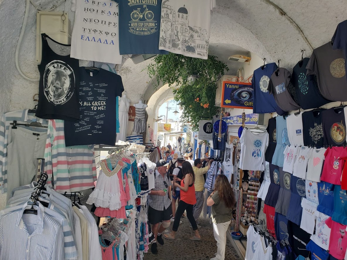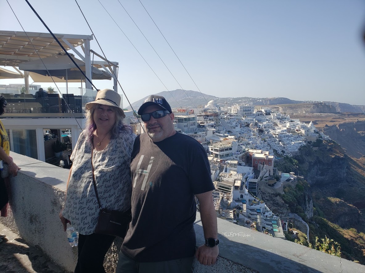 Then Bonnie, Steve, and Mom decided to rent a car to explore. Susan, Murray, and I continued to shop around for a while and then we decided to try to get over to the city OIA which contained the iconic blue domed building synonyms with Santorini. We wanted to take a high speed boat which we had seem available when we first got off the ship but when we went back down we were told they were no longer running.