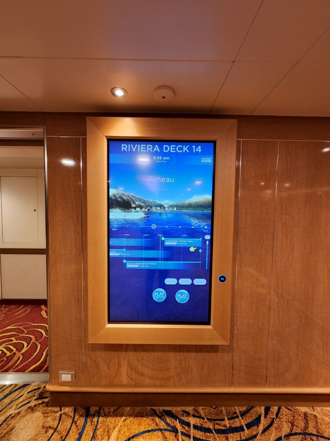 The ship had these big, beautiful interactive signs throughout the ship. This one was by our elevator – and it shows the activities for the day as well as the port – if you’re in port. These signs interact with the medallions that also open our room doors and allow us to do fun things like order drinks by the pool.