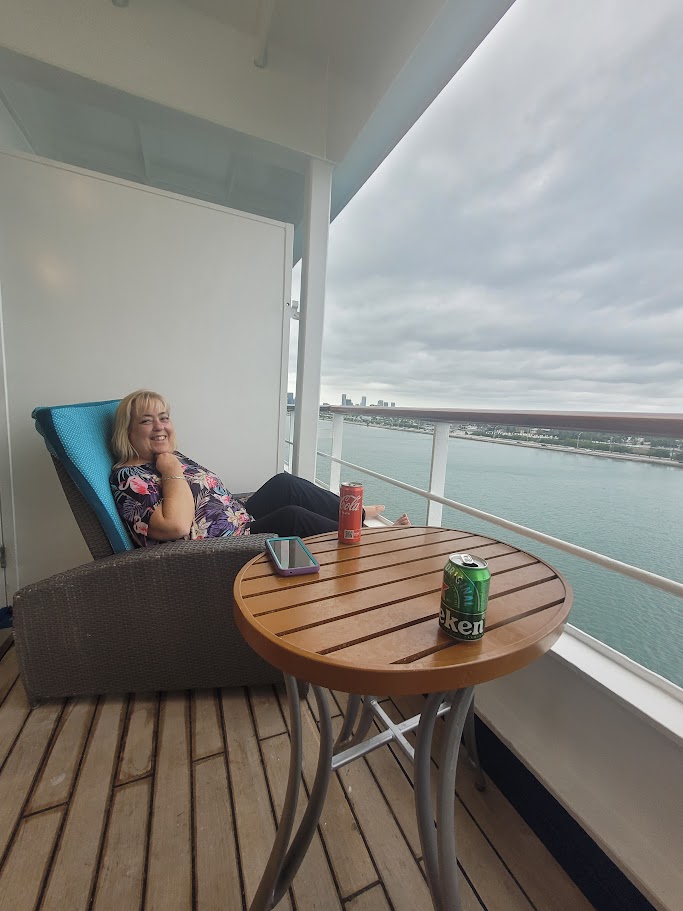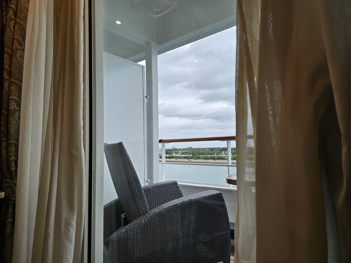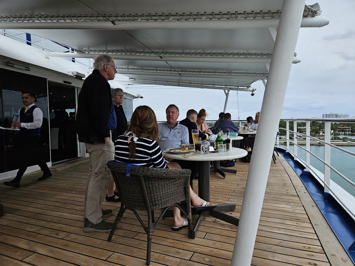 The drive from the hotel to the port took about 40 minutes and the check-in took perhaps 15 minutes and we were onboard! From there we dropped off our bags in the room and went up to the pool area to see what the pool-side buffet looked like. As tempting as that was we went in to the full buffet a little further away (La Veranda) and had a great lunch (Mostly with HUGE shrimp and cocktail sauce). It was great!