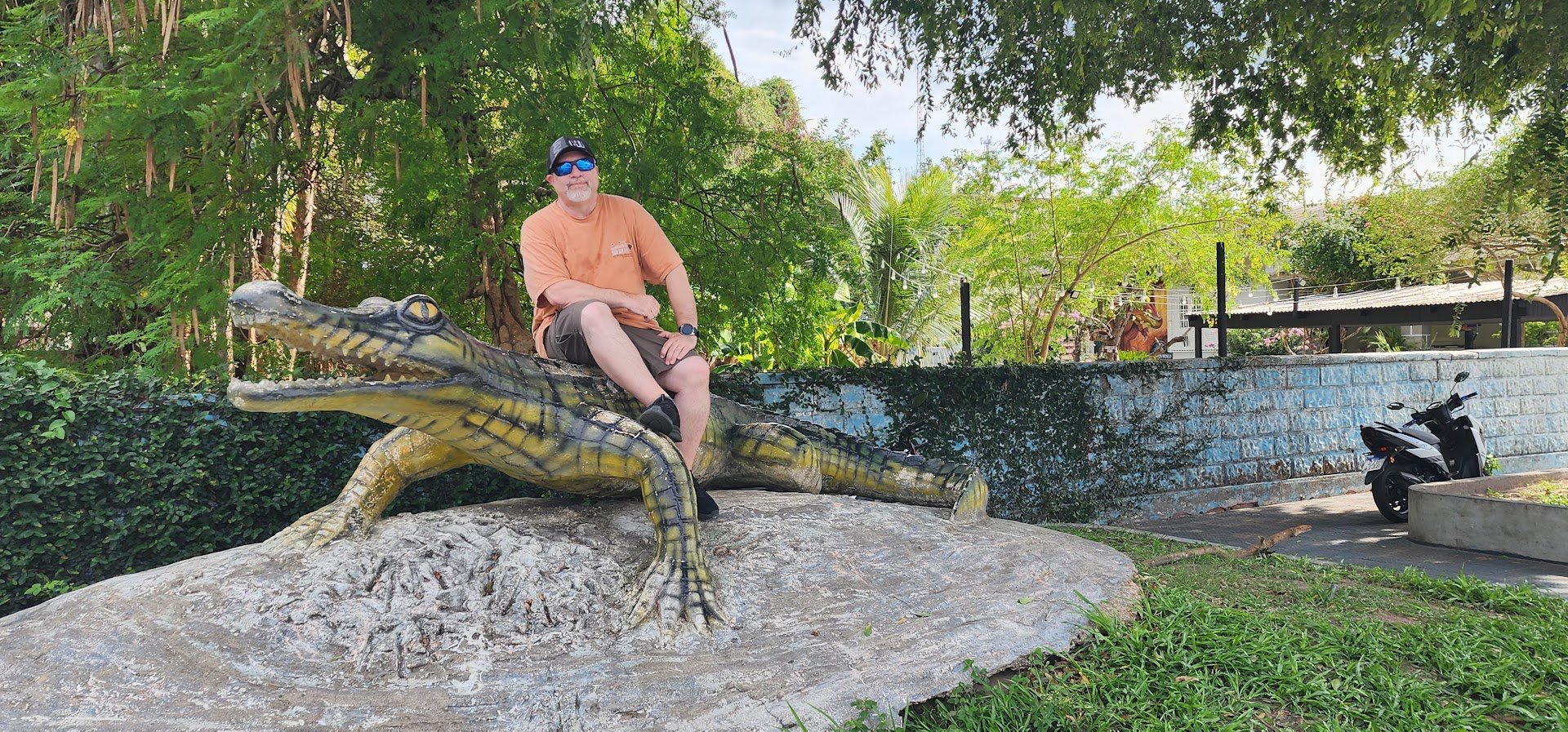 Adam with a crocodile statue