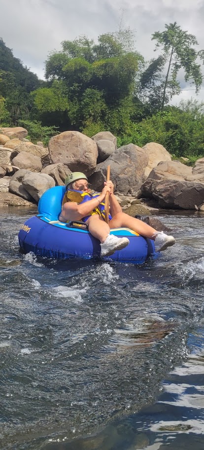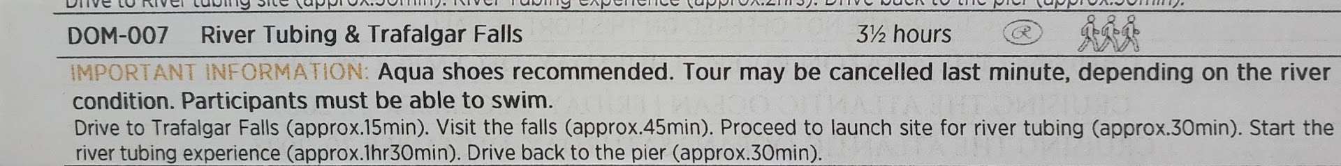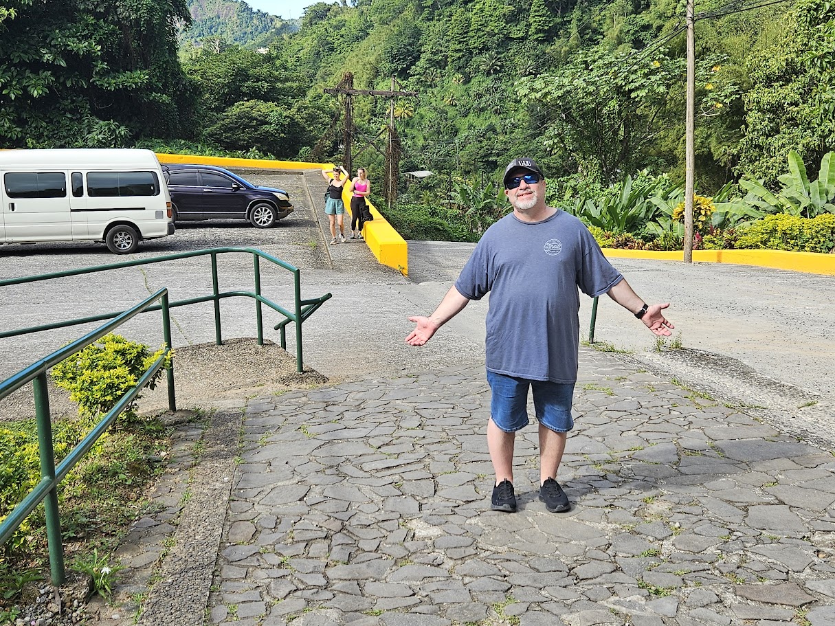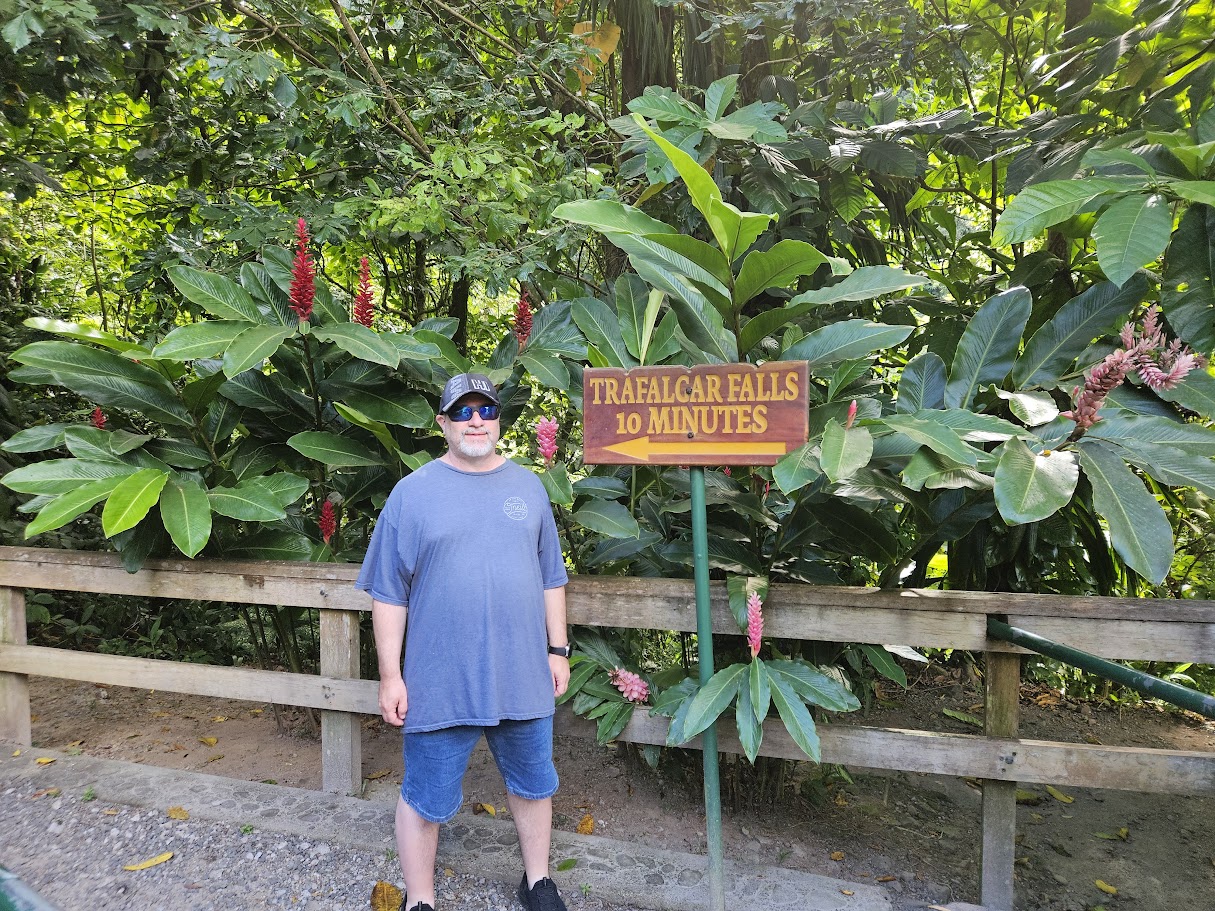 Today’s tour is a trip to Trafalgar Falls and then River tubing. We were a bit apprehensive about the River Tubing because we didn’t know if the water was going to be cold – but it turned out to be wonderful. Unfortunately, we didn’t get a lot of photos during the tubing because we had to leave our cameras back in the van – we were worried about getting them water damaged. David had his with him in a waterproof container so he got some photos though! I think the tubing was one of our favorite activities on the cruise. At the end they took us for some Rum punch which was VERY strong.