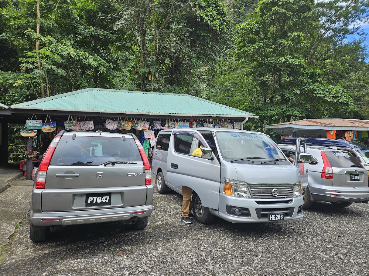 The parking area near the falls – we were in a van like that