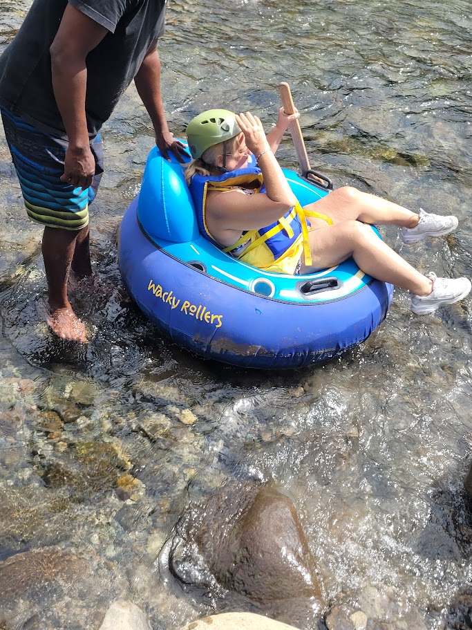 Cindy getting in her raft