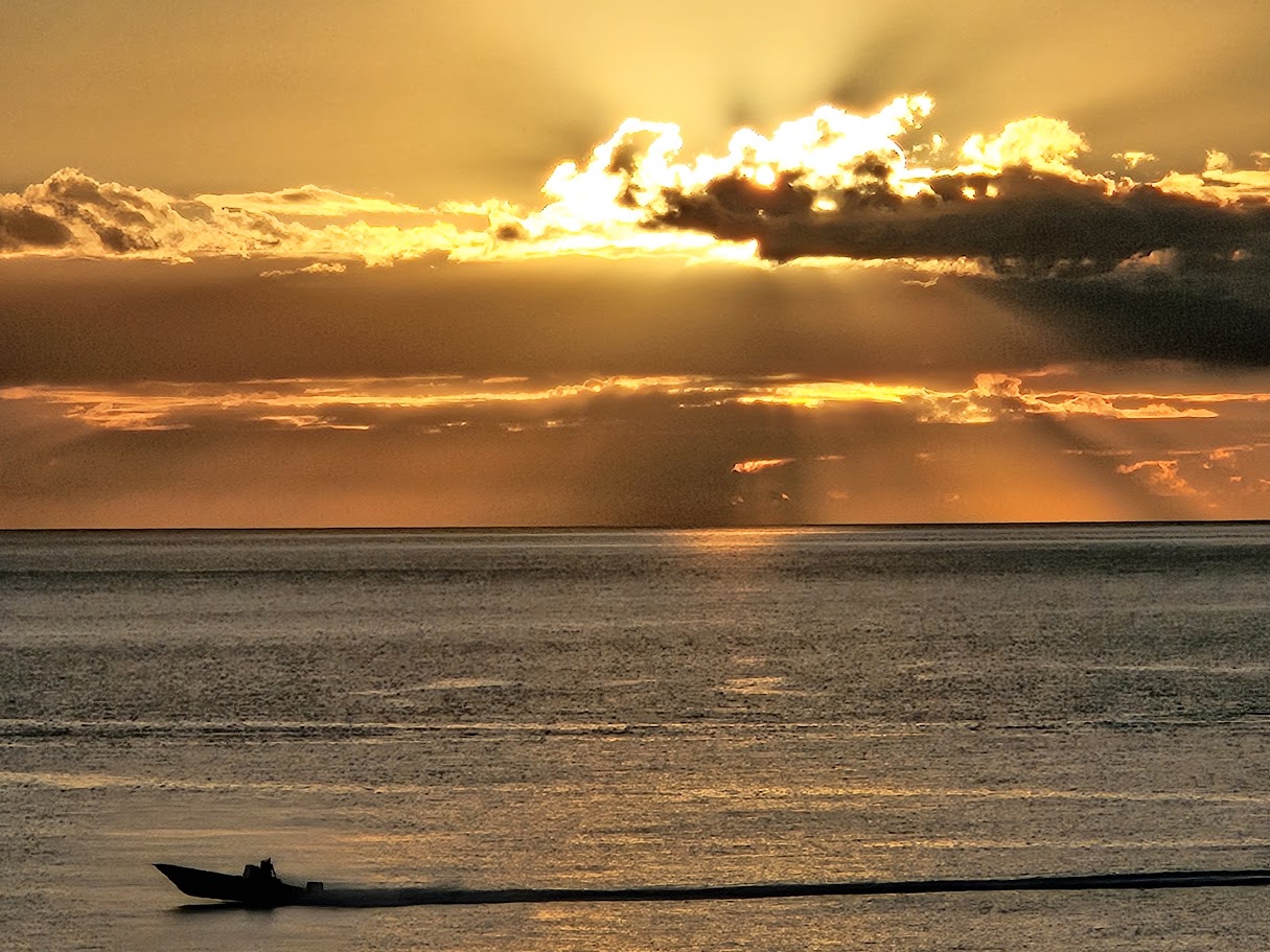 Boat sailing into the sunset