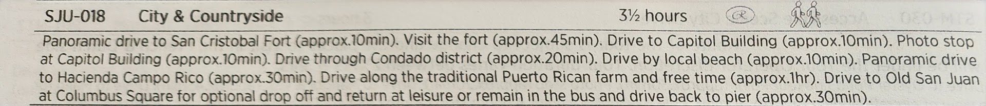 Today’s tour is called “City and Countryside” – we visited the San Cristobal Fort and then the guide pointed out points of interest and then we went to a location called Hacienda Campo Rico. The hacienda is on the grounds of a former sugar plantation which is now a tourist visiting location and locals also book the property for weddings and events.